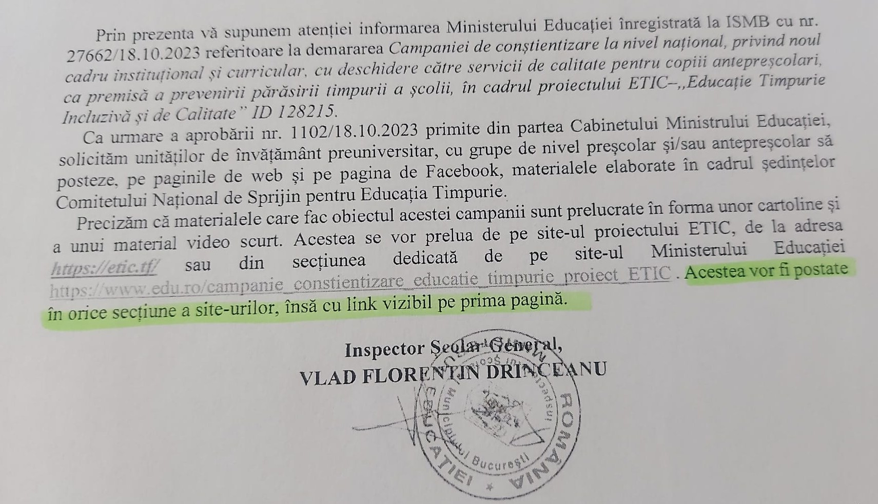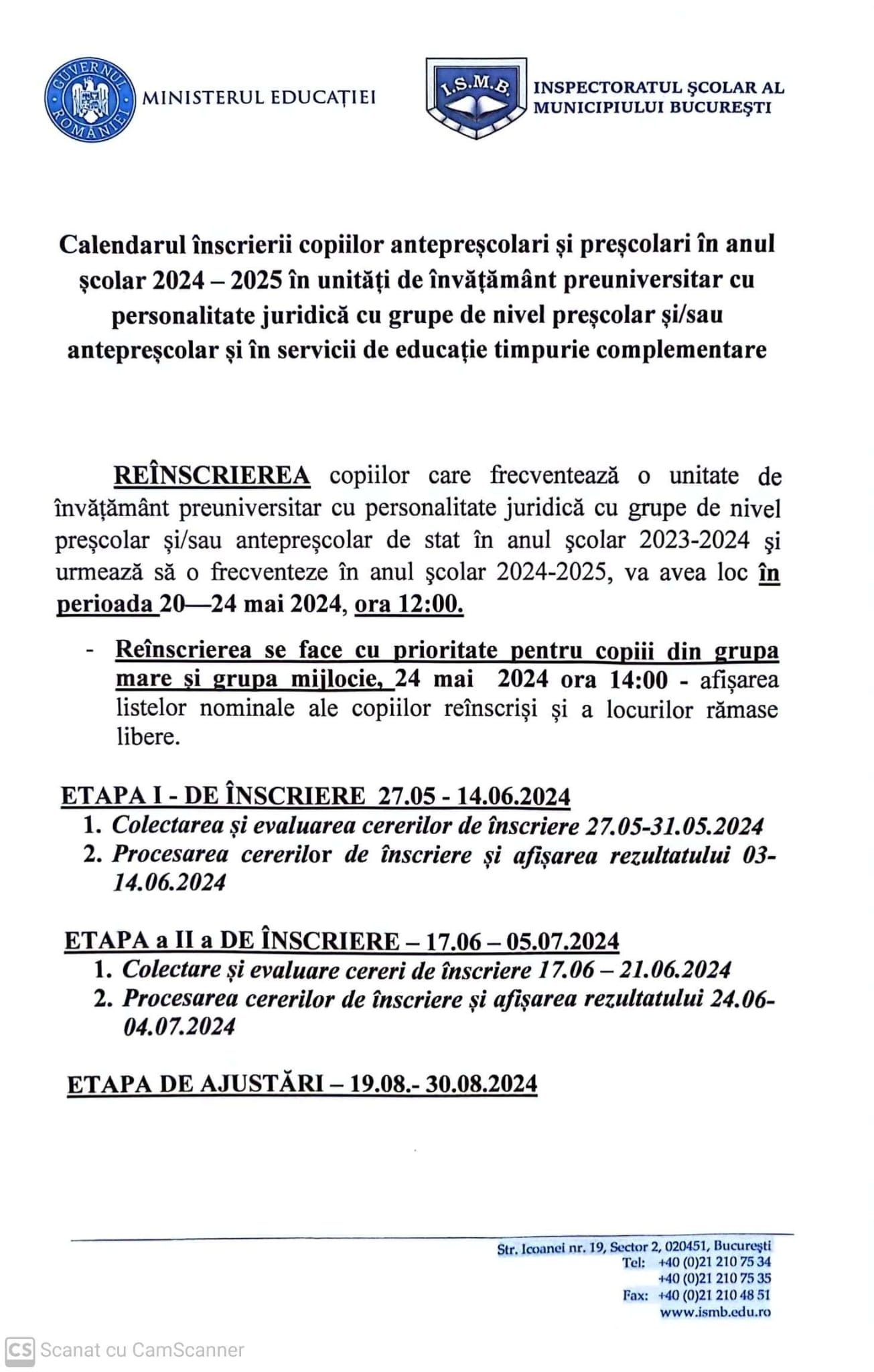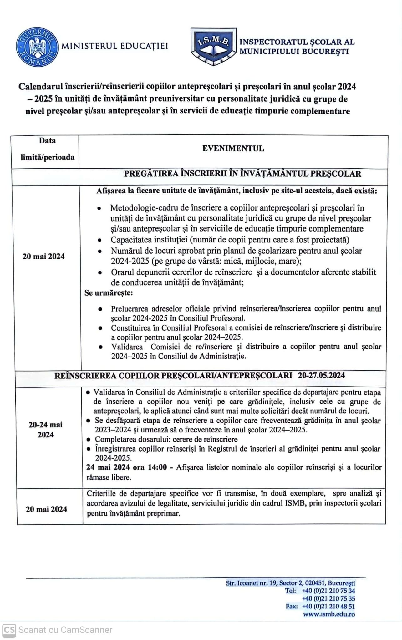 ISMB a publicat pe site-ul propriu - http://ismb.edu.ro/index.php/inspectie-scolara-si-curriculum/anteprescolar documentele / informațiile necesare înscrierii în învățământul antepreșcolar și preșcolar pentru 2023/2024