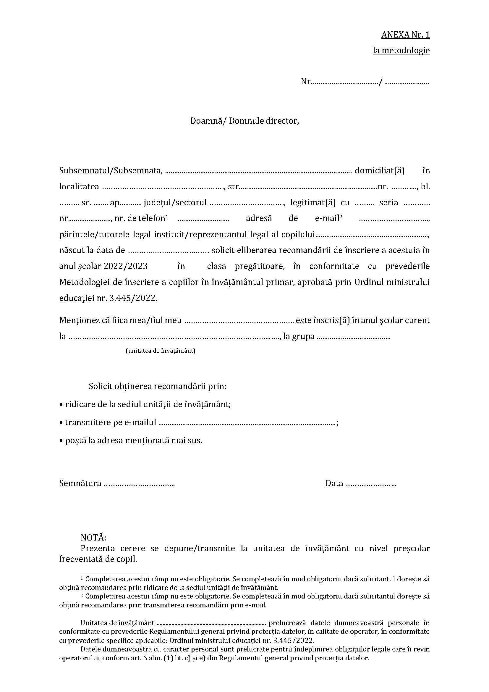 Anexa 1 - METODOLOGIE-CADRU DE ÎNSCRIERE A COPIILOR ANTEPREȘCOLARI ȘI PREȘCOLARI