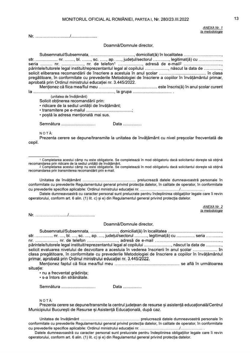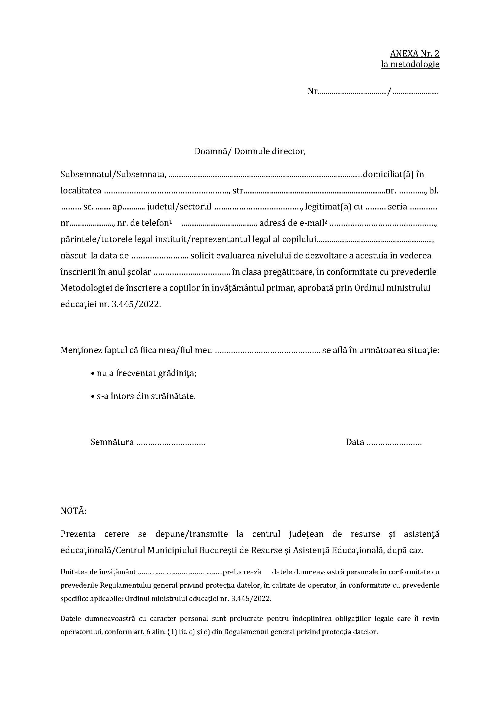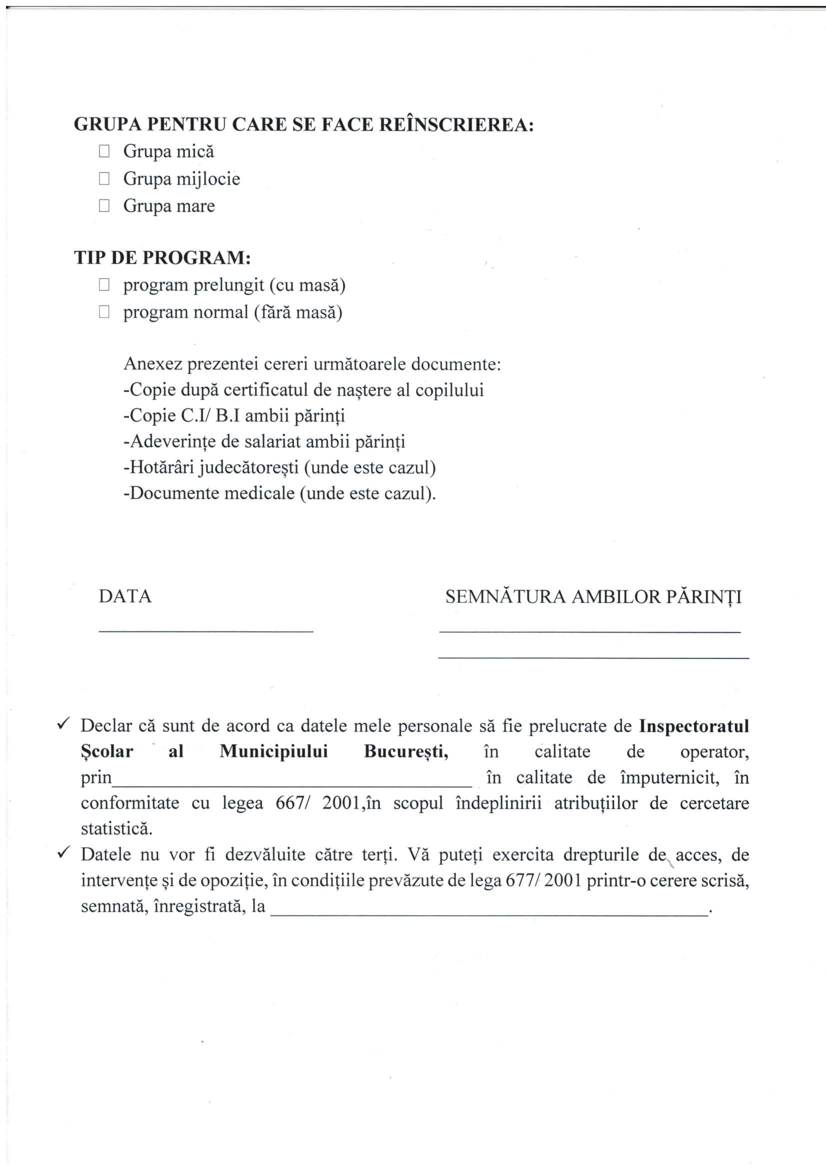 • CERERE DE INSCRIERE SEMNATA DE AMBII PARINTI
