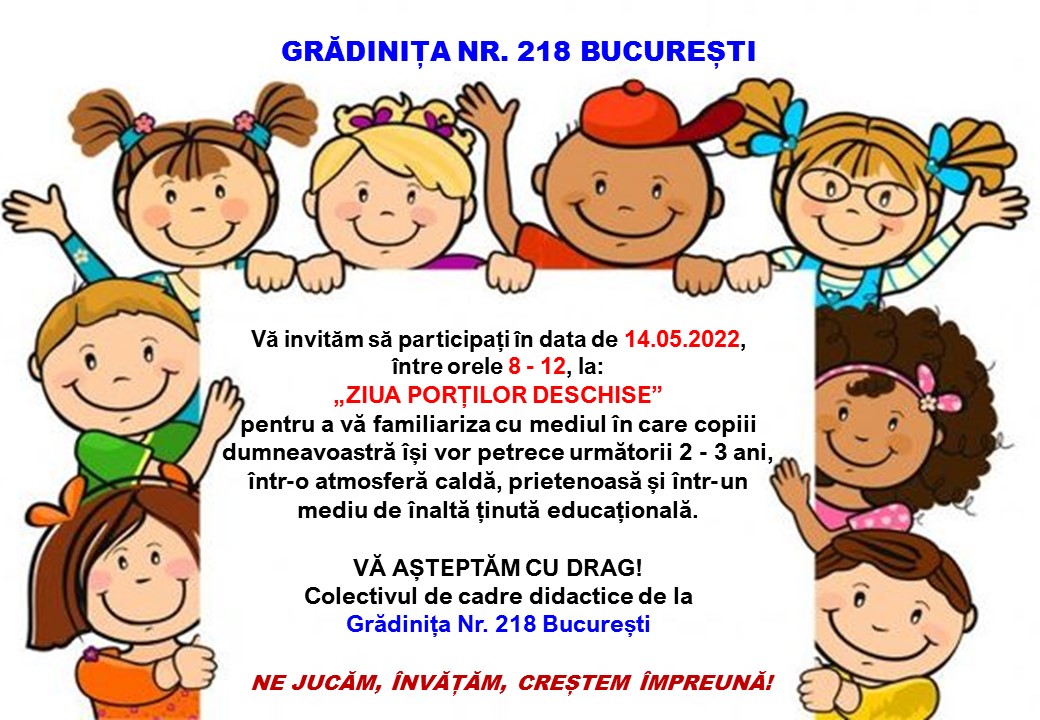 •  GRADINITA NR. 218 VA FUNCTIONA IN LUNA IULIE CA GRADINITA DE VACANTA.